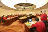 윤홍근 제너시스BBQ그룹 회장(가운데)과 임직원들이 지난 26일 코로나19 긴급 대책회의를 열고 지원 방안을 논의하고 있다. [사진 제공 = 제너시스BBQ그룹] |