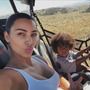 공개된 사진 속 킴 카다시안은 아찔한 브라탑을 입은 채 아들과 휴가를 보내고 있는 모습. 귀엽게 브이 마크를 그리고 있다. 옆자리에 앉은 귀여운 아들의 모습도 훈훈하다.