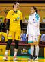 KB스타즈 박지수가 2일 청주실내체육관에서 열린 하나원큐 2019-2020 여자프로농구 하나은행과의 경기 전 WNBA 소속 워싱턴 미스틱스와 훈련캠프 계약을 맞은 강이슬과 얘기를 나누고 있다. 2020.03.02