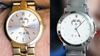 이만희 신천지 총회장이 지난 2일 기자회견장에 차고 나온 금장시계(왼쪽), 오른쪽은 박근혜 정부가 제작한 은장시계다. 박 전 대통령 측 유영하 변호사는 이 총회장이 찬 시계는 "가짜"라고 했다. 박근혜 정부 청와대에서 제작한 기념 손목시계는 은장시계 1종이고, 날짜창도 없다는 것이다./조선일보DB |