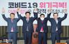 바른미래당을 탈당해 미래통합당에 합류한 김중로(오른쪽부터), 이동섭, 임재훈 의원이 지난달 26일 국회에서 열린 의원총회에서 심재철 원내대표(오른쪽에서 두번째)와 함께 의원들에게 인사하고 있다. 연합뉴스 |