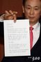 박근혜 전 대통령 변호인인 유영하 변호사가 4일 오후 서울 여의도 국회 정론관 앞에서 박 전 대통령의 자필 편지를 공개하고 있다. |