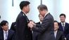 문재인 대통령이 5일 청와대에서 김홍희 해경청장에게 임명장 수여 후 지휘권 표장을 달아주고 있다. /연합뉴스 |
