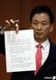 (서울=뉴스1) 이광호 기자 = 박근혜 전 대통령의 측근 유영하 변호사가 4일 오후 서울 여의도 국회 정론관에서 박 전 대통령의 옥중편지 내용을 전달한 뒤 편지를 들어보이고 있다. 20203.4/뉴스1 |