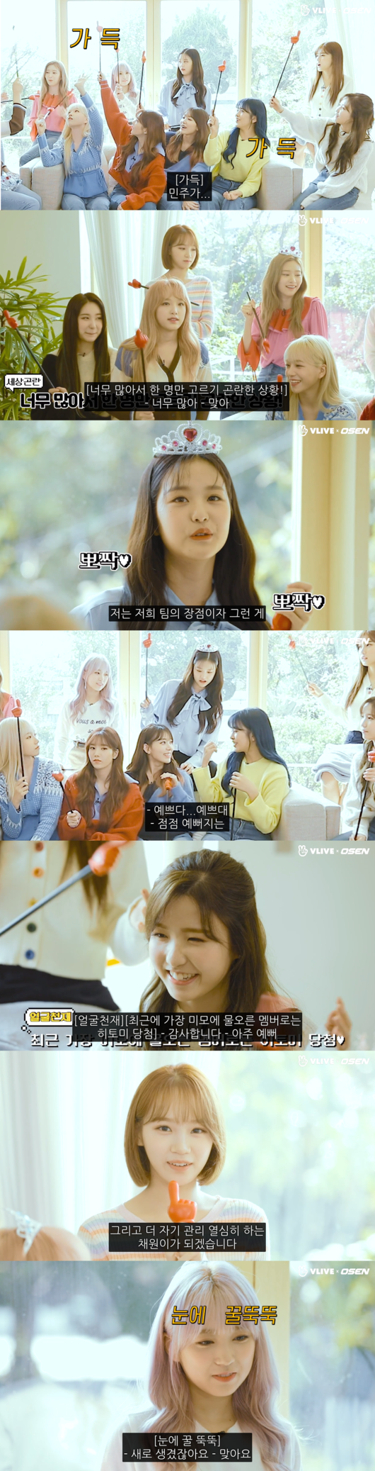 히토미는 “이런 상 받을 수 있어서 기쁘다. 앞으로도 예쁘게 할 수 있도록 열심히 하겠다”고 소감을 말했다. 2등 채원도 “뽑아주셔서 감사하다. 더 자기 관리하는 채원이 되겠다”고 덧붙였다. 멤버들은 “단발로 파격 변신했는데 인형 같다. 이렇게 잘 어울릴 수가 없다”며 칭찬했다.