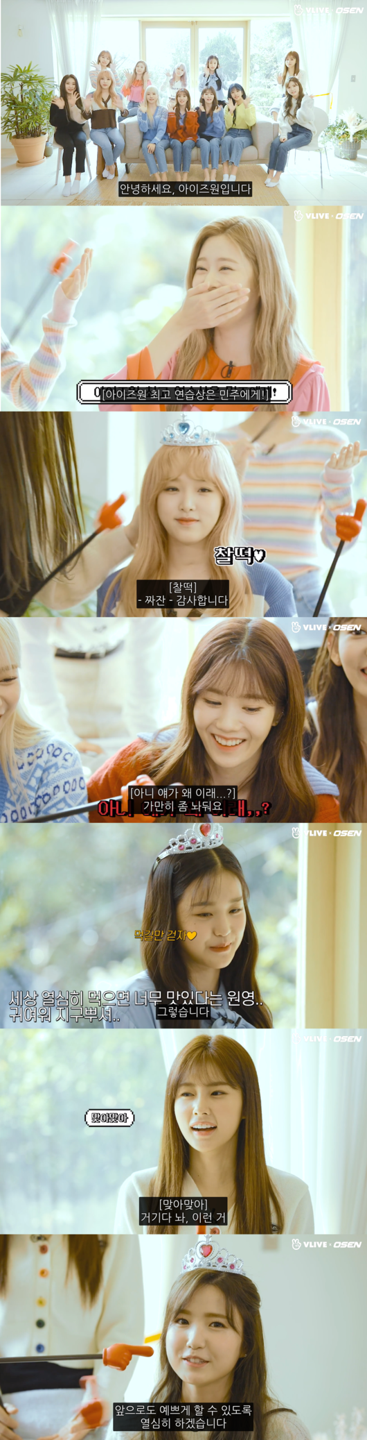 “제일 잘 먹는 먹상” 1위는 원영이었다. 멤버들은 “원영은 정말 행복하게 먹는다. 김에 뭘 올려먹는 등 정말 맛있게 먹는다. 하루에 대화하는 얘기의 비중에서 가장 많이 차지하는 게 음식 얘기”라고 말했다.