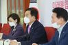 미래통합당 심재철(가운데) 원내대표가 8일 국회에서 기자간담회를 열고 있다./연합뉴스 |