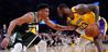 미국프로농구(NBA) LA 레이커스의 ‘킹’ 르브론 제임스(오른쪽)가 7일 밀워키와의 경기에서 정규 리그 최우수선수(MVP)를 놓고 경쟁하고 있는 야니스 아데토쿤보를 앞에 두고 공격을 시도하고 있다. 제임스는 이날 NBA 역대 3번째로 개인 통산 3만4000득점을 넘어섰다. 로스앤젤레스=AP 뉴시스 |