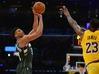 아데토쿤보는 7일 LA 레이커스와의 경기에서 착지하다 왼쪽 무릎을 다쳤다.