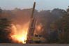북한 조선중앙통신은 10일 김정은 국무위원장이 전날 인민군 전선 장거리포병부대의 화력타격훈련을 지도했다고 보도했다. 북한 관영매체가 공개한 초대형방사포 발사 장면. [헤럴드DB] |