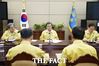 문재인 대통령이 10일 청와대에서 박능후 보건복지부 장관과 진영 행정안전부 장관으로부터 코로나19 방역 대책 추진상황을 보고받는 모습. 문 대통령을 포함해 참석자들 모두 마스크를 쓰지 않는 점이 눈길을 끈다. /청와대 제공 |