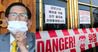 신천지 이만희 총회장이 2일 가평 별장 '평화의 궁전'에서 '코로나19' 사태 관련 기자회견을 열고 있다. 오른쪽은 출입문이 굳게 잠긴 광주광역시 북구 신천지 베드로 지성전(광주교회). 프리랜서 장정필 |