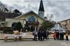 인천 남동구에 있는 백송교회. 교회 앞 도로에 마스크가 가득합니다.