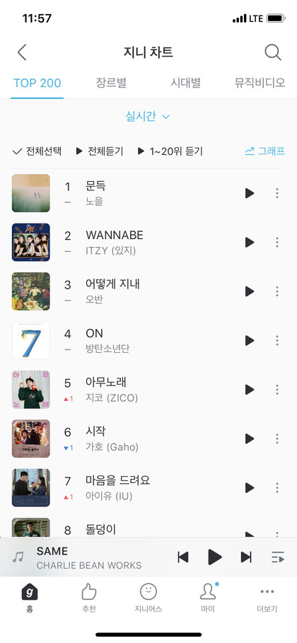 인기 척도였던 ‘멜론’ ‘지니’ 차트