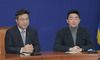 더불어민주당 윤호중 사무총장(왼쪽)이 15일 서울 여의도 국회에서 비례연합정당 참여와 관련한 기자간담회를 하고 있다. 하상윤 기자 |