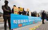 전국신천지피해자연대 소속 회원들이 지난 12일 청와대 분수대 앞에서 이만희 신천지 총회장을 고발하고 피해자 보상을 요구하는 기자회견을 하고 있다. 연합뉴스 |