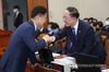 인사하는 홍남기와 김정우 의원 |
