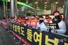 7일 서울 중구 IBK기업은행 본점에서 노조원들이 윤종원 IBK기업은행장 출근 저지 투쟁을 하고 있다. /문호남 기자 munonam@ |