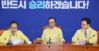 이해찬 대표(가운데)가 18일 국회에서 열린 최고위원회의에서 박주민 최고위원의 발언을 듣고 있다. /연합뉴스 |