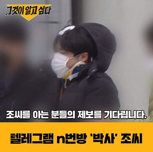 이어 ‘그알’ 측은 공식 인스타그램에도 조모 씨의 사진을 게재하며 “텔레그램 박사방을 운영하며 일명 ‘박사’로 불린 용의자 26세 조모씨에 대해 아시는 분들의 제보를 기다립니다”라는 글을 남겼다.