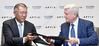 정의선 현대차그룹 수석부회장(왼쪽)과 케빈 클락 앱티브 최고경영자(CEO)가 지난해 9월 미국 뉴욕 골드만삭스 본사에서 자율주행 소프트웨어 개발을 위한 합작법인 설립 본계약에 서명하고 있다. 사진 현대자동차 |