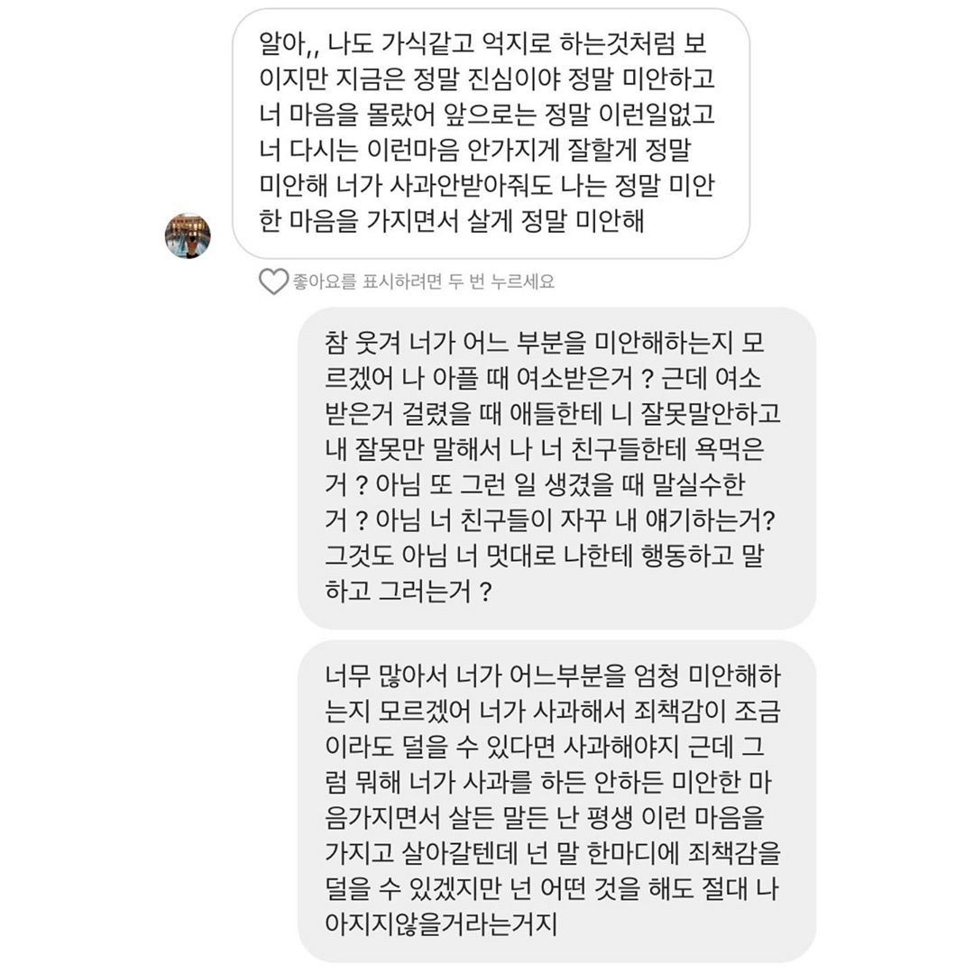 특히 마지막 사진에서 고승민 선수는 "너가 사과 안 받아줘도 나는 정말 미안한 마음을 가지면서 살게. 정말 미안해"라는 메시지를 A씨에게 보낸 것으로 보인다.