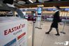 (김포공항=뉴스1) 유승관 기자 = 24일 서울 강서구 김포공항 국내선청사 내 텅 빈 이스타항공 수속 카운터 앞으로 공항 직원들이 지나가고 있다.