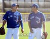 토론토 블루제이스 류현진이 16일(한국시간) 플로리다 더니든 바비 매틱 트레이닝 센터에서 열린 스프링캠프에서 일본 야마구치 슌과 롱토스 후 이야기를 나누고 있다. 더니든(미 플로리다주) 최승섭기자 | thunder@sportsseoul.com |