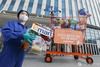 [서울=뉴스핌] 최상수 기자 = 그린피스가 26일 오전 서울 성동구 성수동 이마트 본사 앞에 플라스틱 쓰레기로 가득 채운 높이 5m짜리 대형 카트를 설치했다. 그린피스는 불필요한 일회용 플라스틱 포장재를 없애기 위해 국내 대형마트에 플라스틱 감축 목표를 세우고 이를 투명하게 공개할 것을 요구하고 있다. 2020.03.26 kilroy023@newspim.com