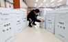 26일 오후 인천시 중구 옹진군선거관리위원회에서 한 관계자가 제21대 총선에 사용할 투표함을 섬 지역으로 보낼 준비를 하고 있다. 사진=연합뉴스. |