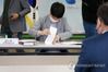 코로나19로 떨어져 앉은 선관위 직원과 후보 |