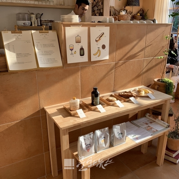 신촌역 근처에 위치한 '댓커피 로스터스'는 입구부터 따뜻한 감성이 물씬 느껴진다. 목제 가구와 소품들로 꾸며져 마치 작은 산장에 놀러 온 듯 따뜻하고 여유롭다.