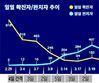 그런데 그래프의 X축 간격이 이상했다. 이달 27일 기준, 그래프는 신규 확진자가 가장 많았던 2월 29일(916명)을 시작점으로 잡고 3월 4일(4일 간격), 7일(3일 간격), 9일(2일 간격), 14일(5일 간격) 확진자 수를 그래프에 넣었다. 날짜 간격이 들쭉날쭉했지만, 그래프는 간격이 일정한 것처럼 그려놨다. 이 과정에서 3월 3일, 6일, 11일 등 전날에 비해 신규 확진자 수가 늘어났던 날은 모두 빠졌다.