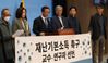 더불어민주당 정성호 의원(왼쪽에서 세번째)과 교수, 연구자 등이 30일 국회에서 재난기본소득 도입을 촉구하는 성명을 발표하고 있다. 연합뉴스 |