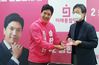 송한섭 미래통합당 서울 양천갑 국회의원 후보(왼쪽)가 30일 서울 양천구 목동중앙로에 위치한 자신의 선거사무소에서 지지방문한 유승민 통합당 의원에게 마스크를 선물하고 있다. [연합] |