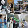 최근 코로나19 사태로 사회적 거리 두기가 글로벌로 확산하면서 병원·마트·방역 분야에서 비대면 로봇의 활약이 커지고 있다. (왼쪽부터 시계 방향으로)독일 서부 린들라르의 에데카 체인 슈퍼마켓 안내 로봇, 미국 워싱턴DC의 음식 배달 로봇, 중국 우한대병원의 방역 로봇, 인도의 서빙 로봇.