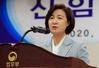 추미애 법무부 장관이 1일 오후 정부과천청사 법무부에서 열린 신임 검사 임관식에 참석해 인사말을 하고 있다. 이날 임관식은 신종 코로나바이러스 감염증(코로나19) 확산 예방을 위해 간소하게 치러졌다. 2020.4.1/뉴스1 |