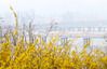 초미세먼지 농도 ''한때나쁨''으로 예보된 지난달 27일 서울 성동구 응봉산에 핀 개나리 뒤로 도심이 뿌옇게 보인다. 연합뉴스 |