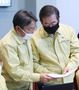 지난달 31일 청와대에서 열린 국무회의에서 박원순 서울시장(오른쪽)과 강기정 정무수석이 대화하고 있다.(연합뉴스 제공) |