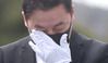 정봉주 열린민주당 최고위원이 지난달 29일 오전 경남 김해시 봉하마을의 노무현 전 대통령 묘역을 참배하며 눈물을 흘리고 있다. /연합뉴스 |