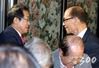 홍준표 당시 자유한국당 대표가 2018년1월 서울 여의도 CCMM빌딩 내 한식당에서 열린 당 고문단 오찬에서 김용갑 고문(오른쪽)과 인사를 나누고 있다. 2018.1.2/뉴스1 |