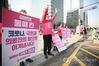 핑크 점퍼와 기호 4번이 적힌 어깨띠, 숫자 4가 적힌 흰 장갑 차림의 후보들은 사거리 각 모퉁이로 흩어져 시민과 차량에 연신 인사하고 지지를 부탁했다.