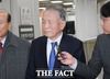 세월호 사건과 관련해 허위공문서 작성 등의 혐의로 기소된 김기춘(81) 전 청와대 대통령비서실장의 항소심 재판 절차가 5월 마무리 수순을 밟는다. 사진은 지난해 12월16일 서울 서초구 서울고등법원에서 열린 항소심 2차 공판에 출석하는 김기춘 전 실장의 모습. /김세정 기자 |