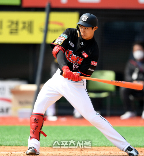 kt 지강혁이 2일 수원kt위즈파크에서 열린 자체 청백전에서 3회초 2사3루 헛스윙을 하고 있다.2020. 4. 2.수원 | 최승섭기자 thunder@sportsseoul.com [기사제보 news@sportsseoul.com] Copyright ⓒ 스포츠서울&sportsseoul.com
