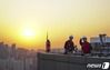 SK텔레콤 홍보모델들이 서울에 위치한 한 빌딩 위에서 5G 기지국을 점검하며 5G 상용화 1주년을 기념해 포즈를 취하고 있다. /사진=뉴스1 |