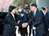 추미애 법무부 장관이 3일 오후 제주지방검찰청을 방문해 박찬호(54?사법연수원 26기) 지검장과 악수를 나누고 있다. 뉴시스. |