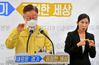 이재명 경기도지사가 지난 1일 오전 경기도 수원시 경기도청 브리핑룸에서 경기도형 재난기본소득 지급 방식 및 사용 방법 등에 대한 기자회견을 하고 있다. 연합뉴스 |