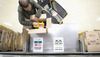 한 고객이 대형마트 자율포장대에서 구매 물품을 종이 상자에 옮겨 담고 있다. [사진제공=연합뉴스] |