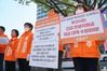 (부산=연합뉴스) 김재홍 기자 = 민중당 부산 남구갑 김은진 후보와 사하을 김진주 후보는 6일 부산시청 광장에서 기자회견을 열고 부산시에 긴급 민생지원금 지급 사각지대 대책을 촉구했다.