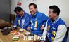 [더팩트ㅣ파주=남용희 기자] 이낙연 더불어민주당 상임공동선대위원장(가운데)이 6일 오후 경기 파주시 금촌통일시장 내 식당에서 경기 파주시갑 윤후덕(왼쪽) 후보, 경기 파주시을 박정 후보와 대화를 나누고 있다. nyh5504@tf.co.kr사진영상기획부 photo@tf.co.kr